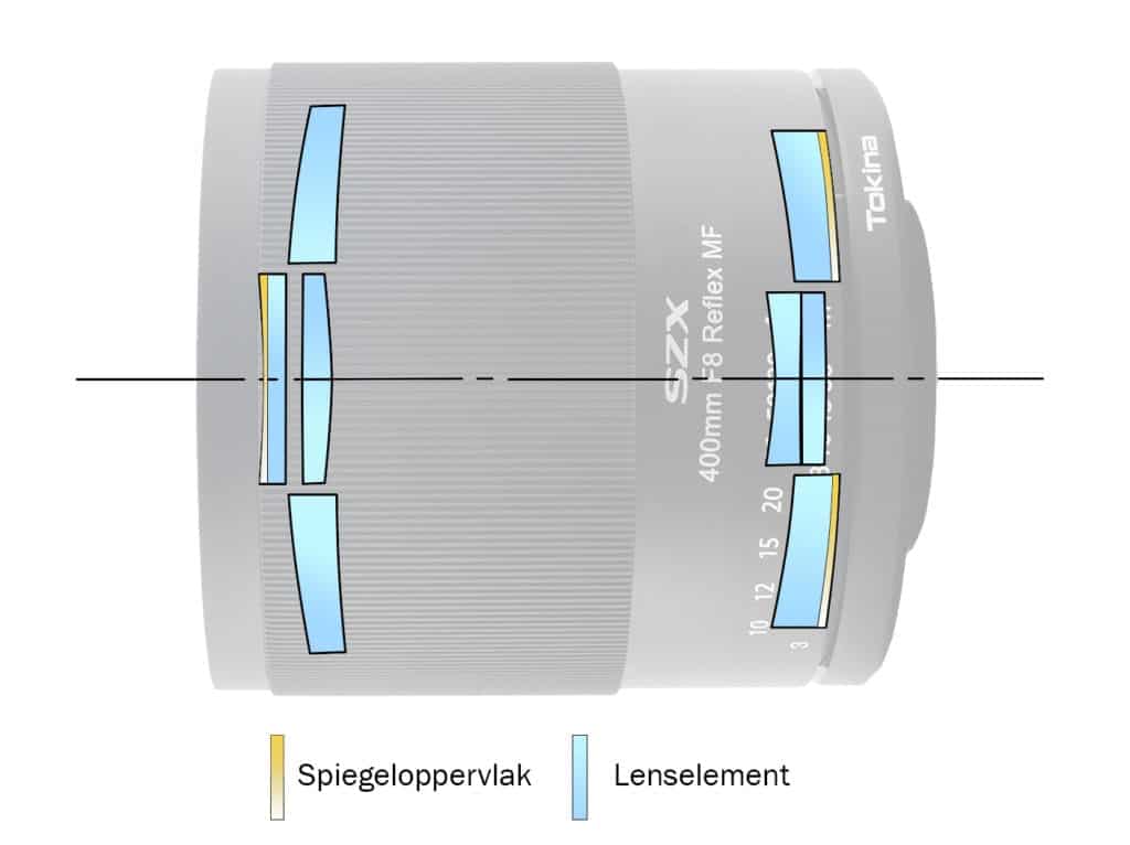 De Tokina SZX 400mm F8 heeft een catadioptrisch systeem, waardoor hij lichter, kleiner en goedkoper is dan vergelijkbare objectieven