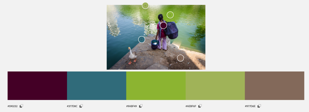 Er zijn tools die een grote hulp bieden om de kleur van kunstwerken te analyseren en zo te leren implementeren in je eigen werk. Adobe heeft een zeer handige online applicatie waarmee je de kleuren van een foto of van een kunstwerk kan selecteren. Deze vind je op color.adobe.com/nl/create/color-wheel. Je kan een afbeelding naar de site uploaden, waarna Adobe er de hoofdkleuren voor je uithaalt. Die kleurpaletten kan je opslaan en invoeren in Adobe-programma’s zoals Photoshop. Vervolgens kan je een hoofdkleur instellen en zien welke kleuren er goed mee samengaan in verschillende kleurenschema’s.