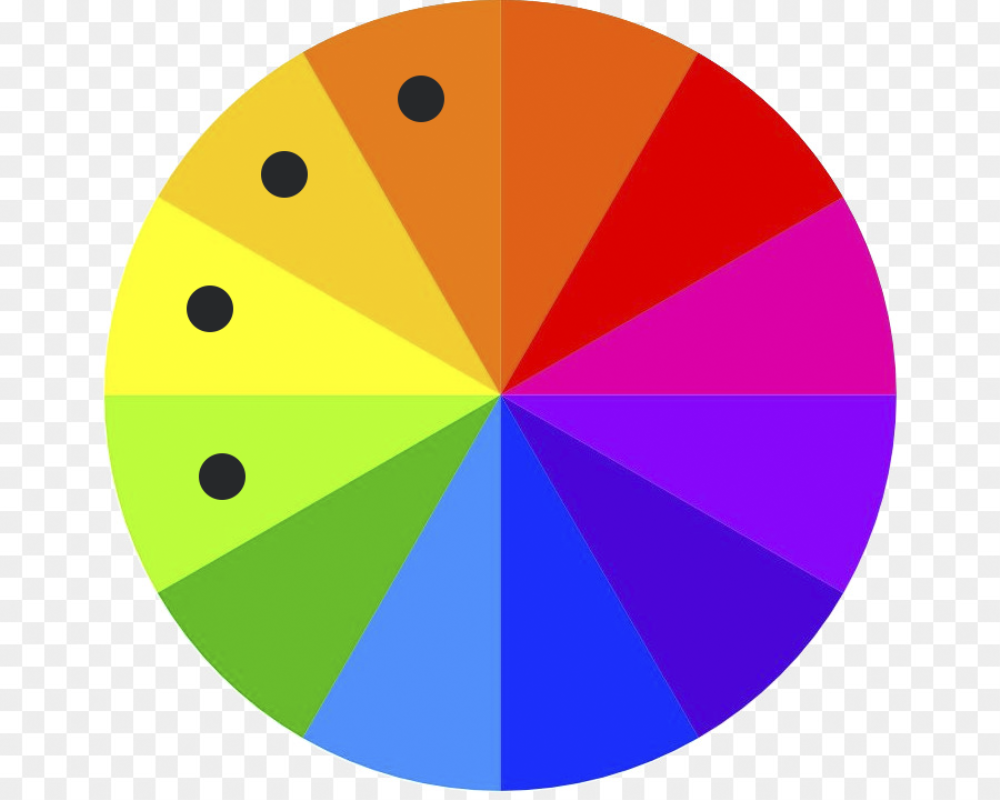 Vaak worden op foto’s drie kleuren gebruikt die op gelijke afstand van elkaar staan op het kleurenwiel. Zo’n palet geeft een levendig resultaat, zelfs als de kleuren bleek of dof zijn. Rood, geel en blauw is een combinatie die heel goed werkt.